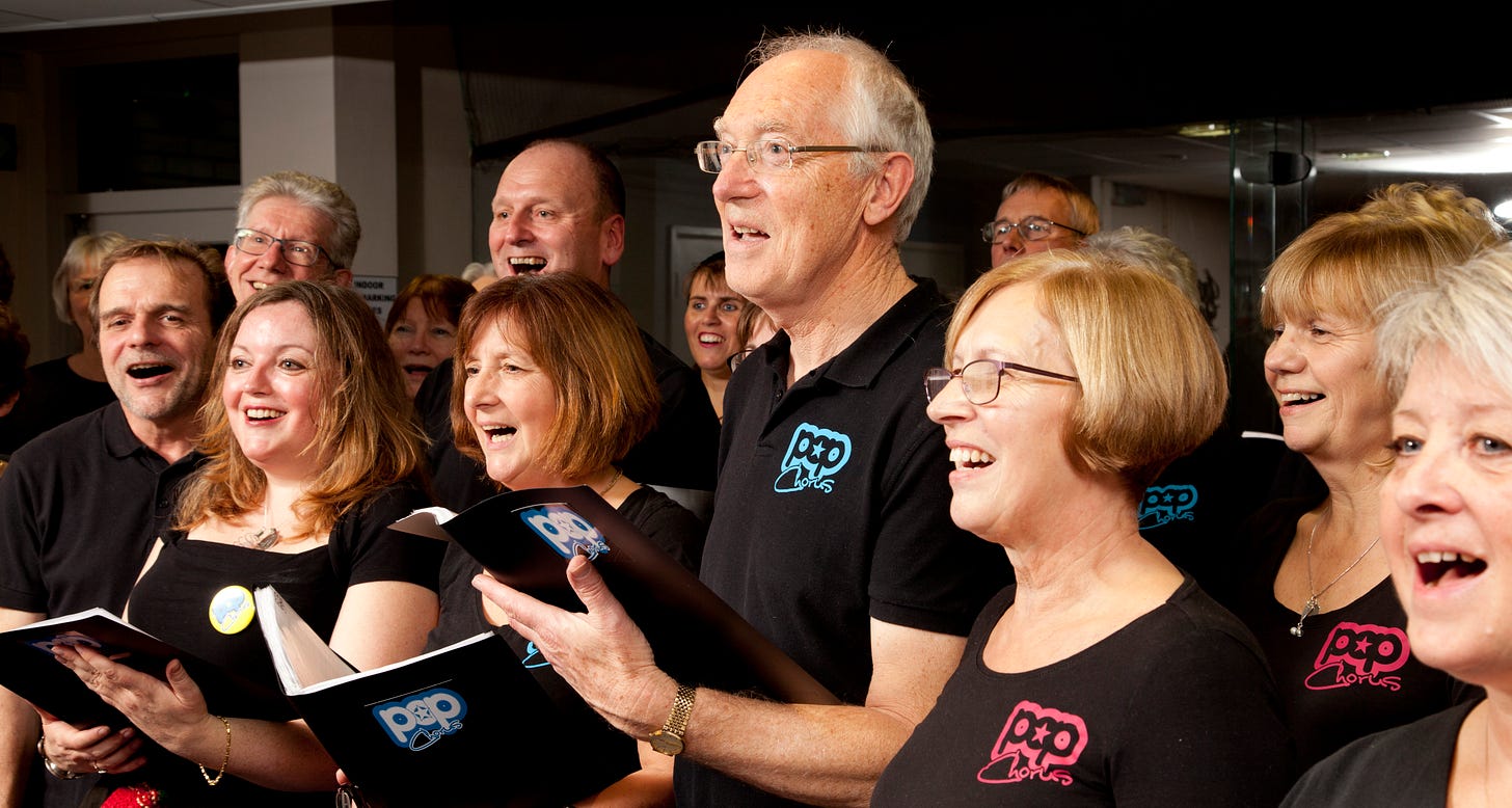 A community choir is a glorious thing. It’s about happiness and togetherness.